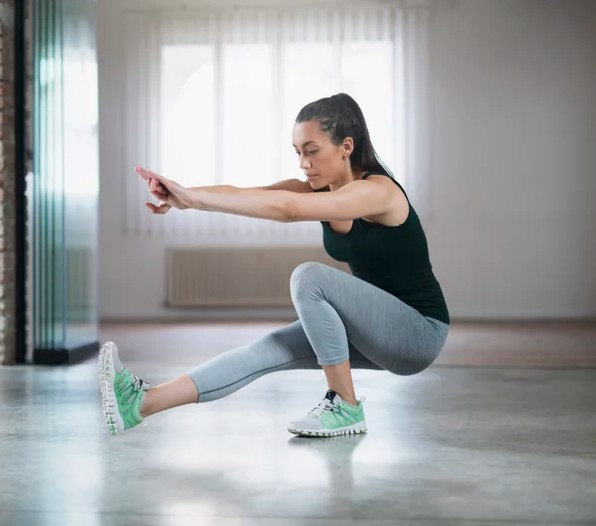 - Single-leg squats: Similar to regular squats but with one leg extended in front, parallel to the ground. Perform 10-15 reps on each leg.
